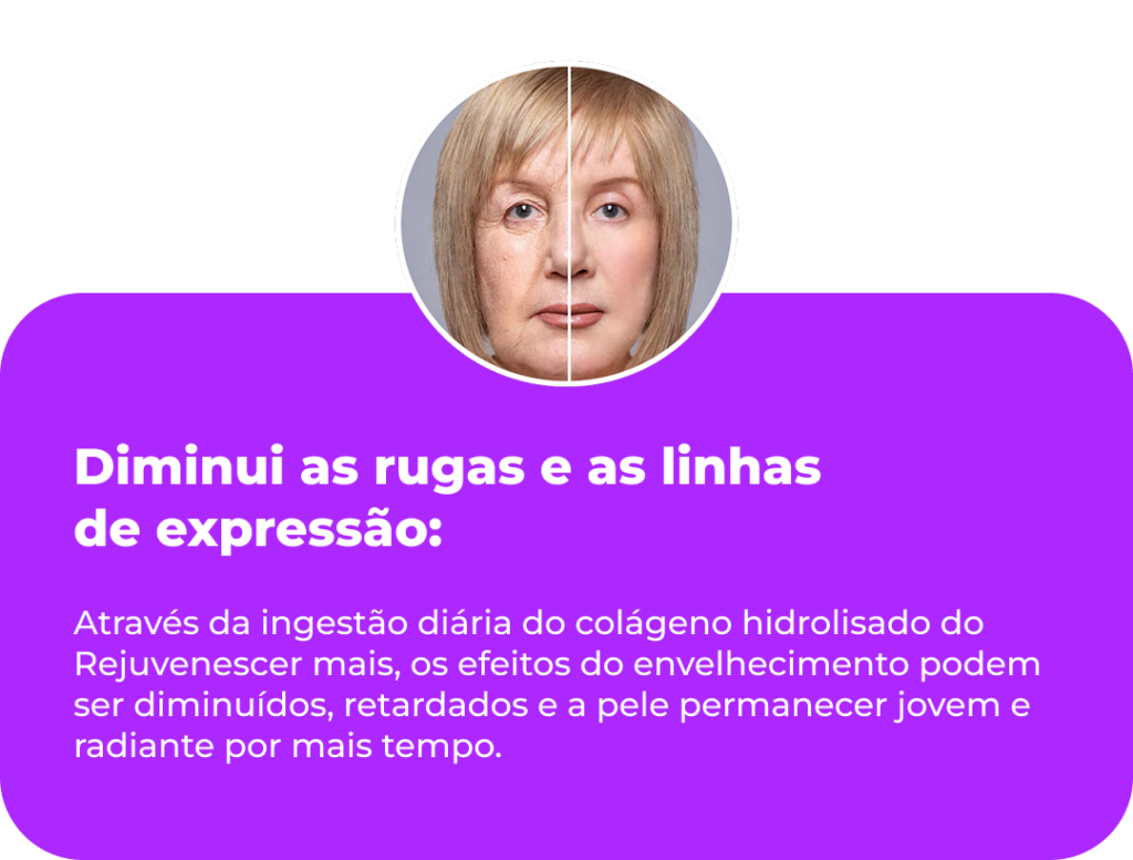 Com os ativos mais poderosos do mercado, a fórmula do Rejuvenescer +, é a chave para transformar seu sonho voltar a ter a pele jovem.
