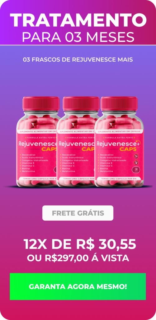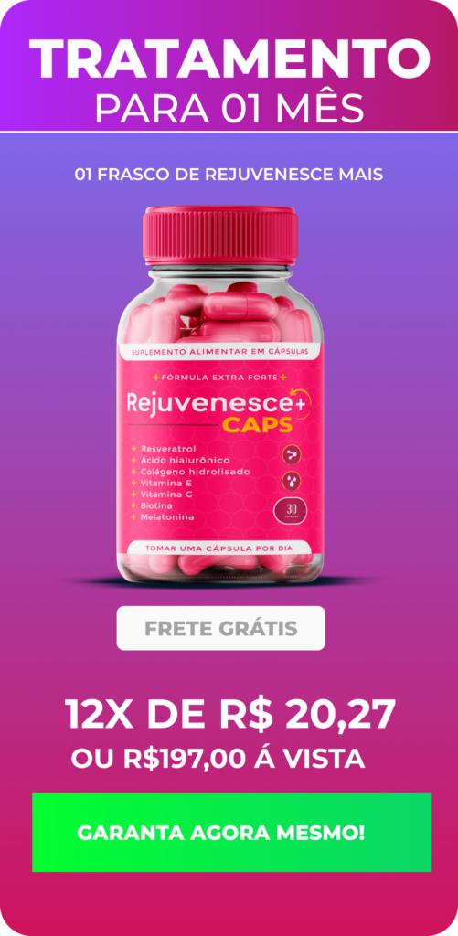 O Rejuvenecer mais CAPS serve para cuidar da pele. Com os ativos mais poderosos do mercado, a fórmula do Rejuvenesce +, é a chave para transformar seu sonho voltar a ter a pele jovem.